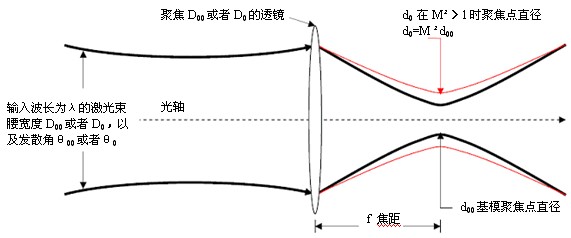 激光光束质量及其聚焦能力是激光器的一个非常重要的特征参数,通常由M2因子表征。测试一台激光器的M2因子,实质上是测试其光斑直径与发散角的乘积与理想高斯光束衍射极限的差异。经推导,其计算公式为:M2=(π/4λ)D0θ;M²,即光束质量因子,表示激光束与基模TEM00接近程度的量。该参数与激光能够聚焦的最小点尺寸密切相关。对于在空间中传播的光束,未聚焦的基模TEM00高斯光束的发散角θ00可以表示为: θ00= 4λ/πD00;其中D00是光束束腰直径,λ为波长。实际光束通常含有其它模式,导致更大的束腰D0,更大的发散角θ0,在这种情况下有: θ0 = M2 4λ/πD0;θ0和D0分别为高阶模的发散角和束腰宽度,M²大于1并且依据ISO11146标准命名为“光束传播比例”。当一束纯高斯光束被聚焦后,聚焦点直径为:d00= 4λf /πD00;其中D00是理想聚焦点直径,f为透镜焦距,聚焦点在透镜后1个焦距的长度的位置上。然而,如果是一个存在畸变的或者多模的光束聚焦后,聚焦点直径为:d00= M²4λf/πD0